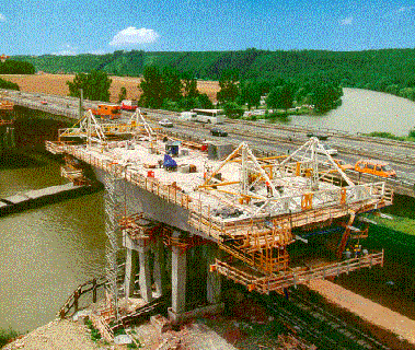 Bauvermessung: BAB A3 Frankfurt - Würzburg, Neubau Mainbrücke Bettingen: Bauvermessung einschl. Koordination und Kontrolle des Querverschubs (21 m) mittels vier Totalstationen
